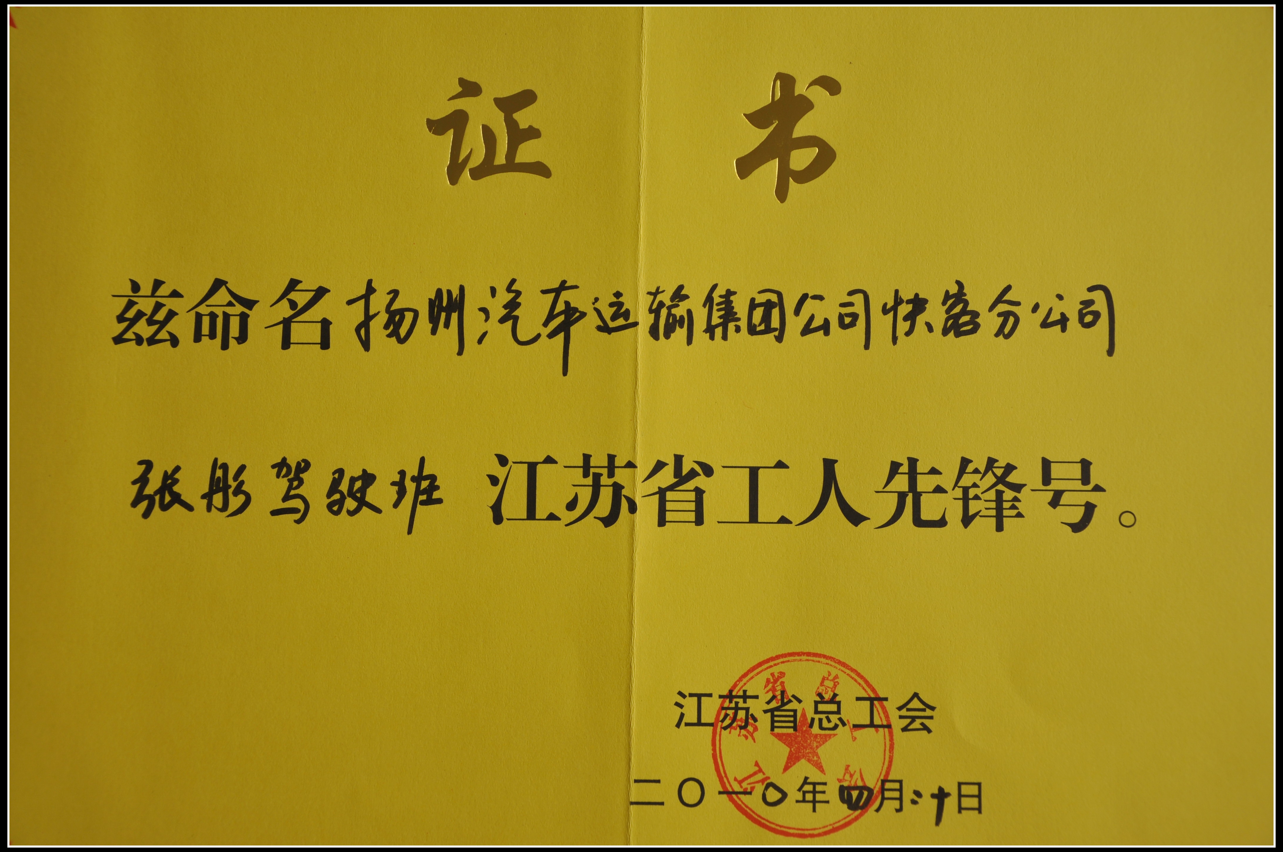 集團(tuán)公司快客分公司張彤駕駛班被江蘇省總工會(huì)評為工人先鋒號