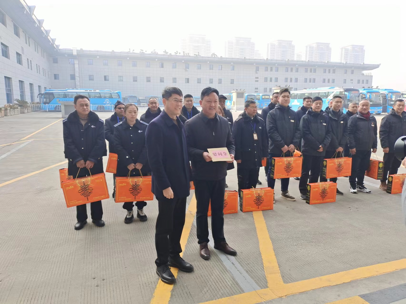 2月9日除夕,在萬家團(tuán)聚、喜迎新春之時(shí),市交通產(chǎn)業(yè)集團(tuán)黨委書記、董事長方璇智帶隊(duì)來到揚(yáng)汽集團(tuán)生產(chǎn)一線,慰問堅(jiān)守崗位的干部職工,為他們送去慰問品和祝福,對他們在新春佳節(jié)期間堅(jiān)守工作崗位,付出辛勤勞動(dòng)表示衷心感謝,并向他們致以新年問候。
