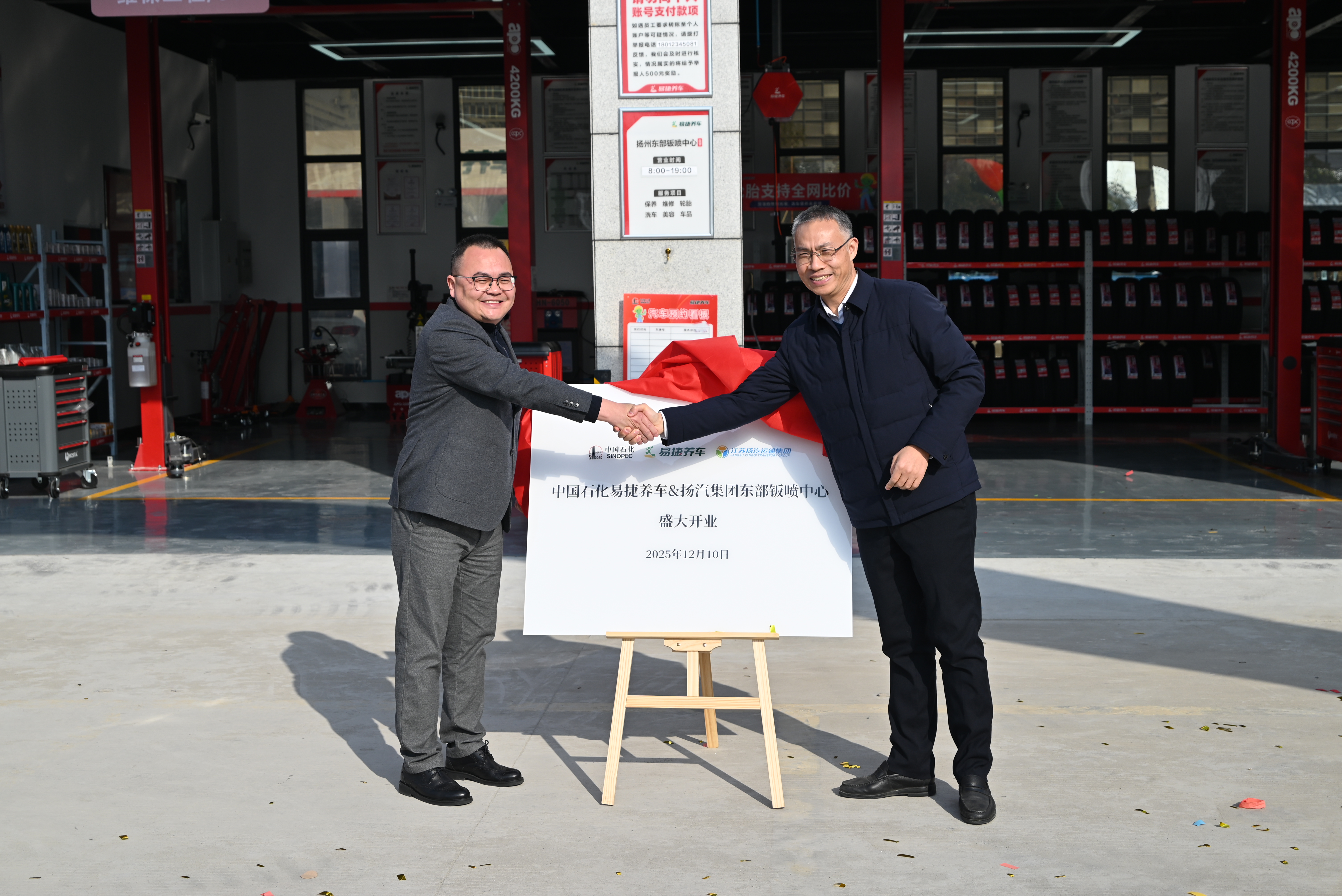 12月10日上午,揚(yáng)汽集團(tuán)與中國(guó)石化銷售股份有限公司江蘇揚(yáng)州分公司合作共建的“易捷養(yǎng)車鈑噴中心”在揚(yáng)州東區(qū)智慧園舉行揭牌開(kāi)業(yè)儀式,中石化揚(yáng)州石油代表、經(jīng)理孔令江,副經(jīng)理吳杰宏,市交通產(chǎn)業(yè)集團(tuán)黨委委員、副總經(jīng)理李崇,揚(yáng)汽集團(tuán)黨委書(shū)記、董事長(zhǎng)萬(wàn)雷,黨委副書(shū)記、副董事長(zhǎng)、總經(jīng)理劉俊等相關(guān)負(fù)責(zé)人出席活動(dòng),共同見(jiàn)證這一央地國(guó)企協(xié)同發(fā)展的新成果。