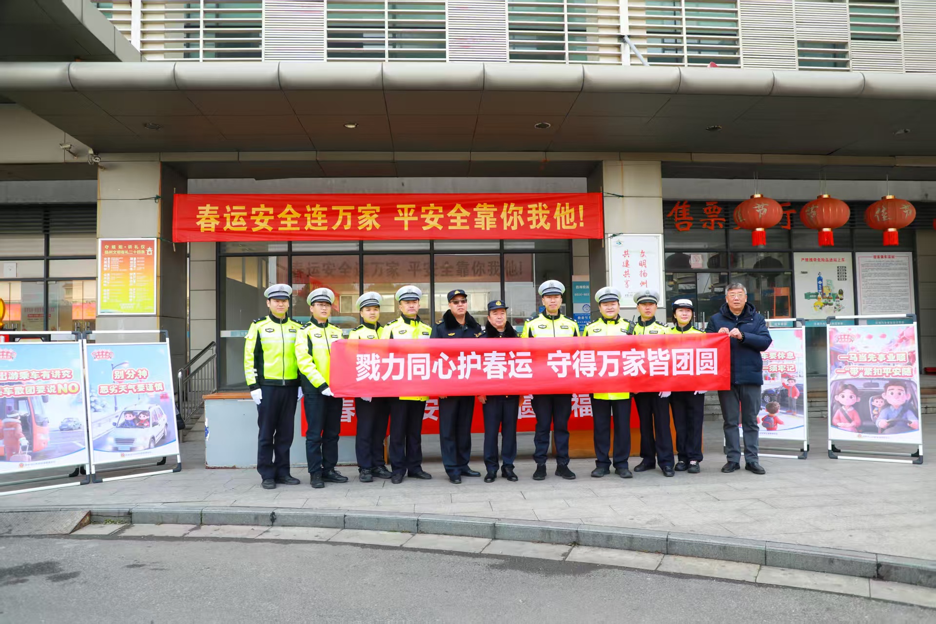 江都汽車客運站積極配合此次宣傳,協(xié)助民警向旅客發(fā)放《致廣大春運交通參與者的一封信》及“福”字貼等宣傳資料,在傳遞交通安全知識的同時,也送上誠摯的新春祝!,F(xiàn)場還設(shè)置了交通安全咨詢臺,及時解答旅客關(guān)心的出行問題,積極倡導(dǎo)“守法規(guī)知禮讓,安全文明出行”的理念,呼吁社會各界共同維護(hù)春運期間道路暢通與旅途平安。